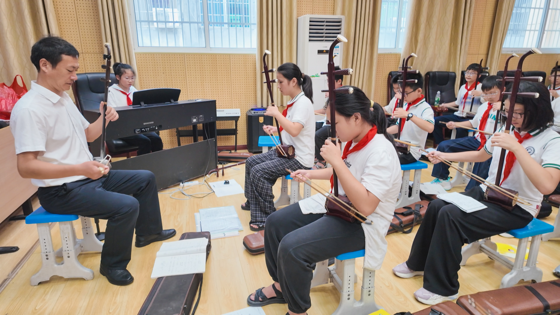 崇阳二小精心构建了以艺术素养为核心的课后服务特色课程体系,开设合唱团、二胡、葫芦丝、鼓号等深受学生喜爱的艺术课程。9月19日,在崇阳二小课后服务课堂上,孩子们或放声歌唱或拨动琴弦或敲击鼓点,在老师的专业指导下沉浸式感受艺术魅力。这不仅丰富了学生的课余生活,还帮助其培养了团队协作精神与责任感,让“双减”后的课后时光成为滋养兴趣、发掘潜能的“快乐园地”。