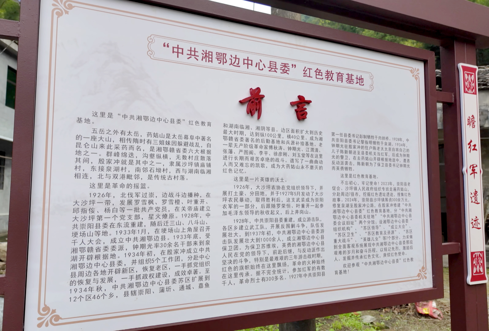 9月27日,“中共湘鄂边中心县委机关驻地”“中共湘鄂边中心县委会议旧址”在崇阳县沙坪镇殷家冲挂牌,这标志着又一重要红色教育基地在崇阳落成。