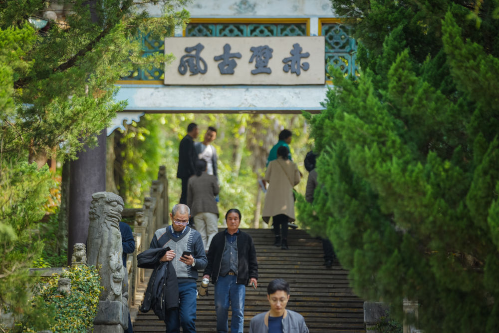 游客在三国赤壁古战场景区游览。新华社记者伍志尊 摄