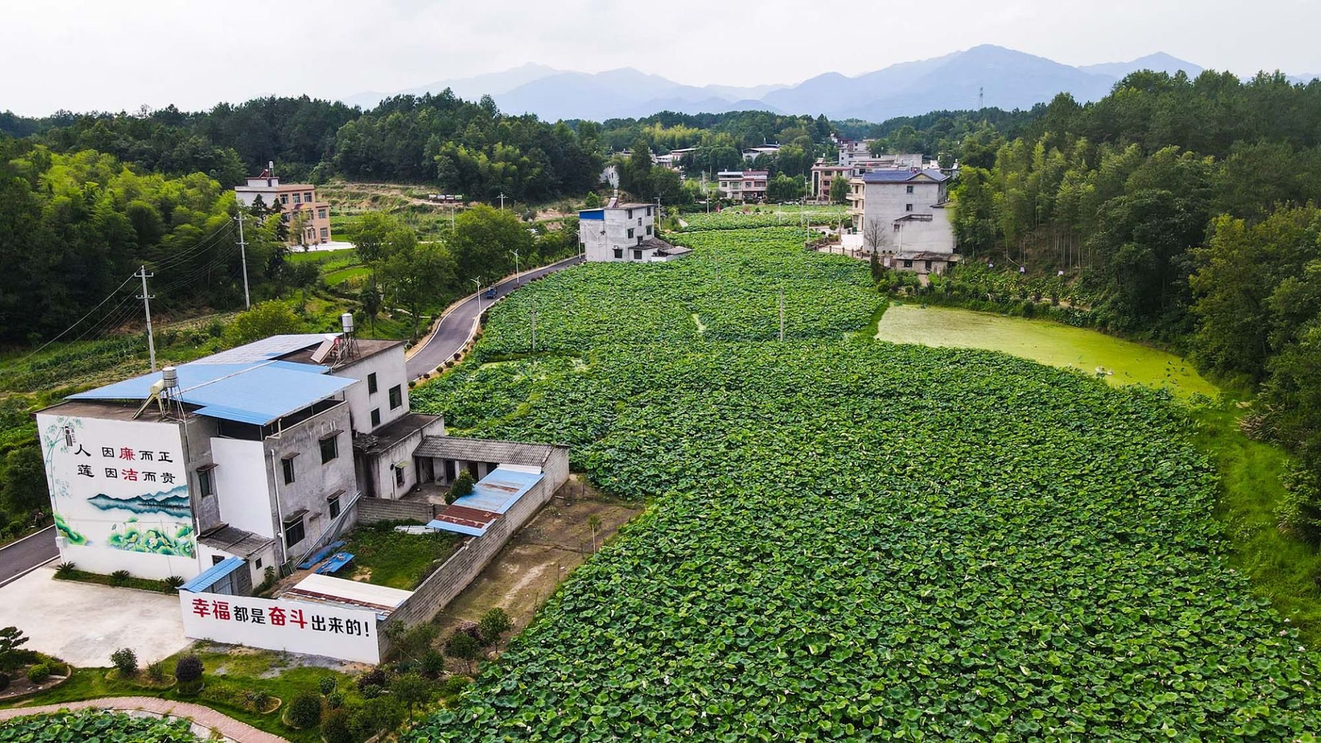 进入大垅村湾,家家户户门前都有一处小花园,里面种满花草。湾组中央盆地,“红旗园林”已经成型,风吹柳树,万条丝绦随风而动,不远处,蓝天白云笼罩下,100多亩莲藕基地中荷花正盛,粉的、白的、青的花瓣被层层叠叠硕大的荷叶衬托着,美不胜收。