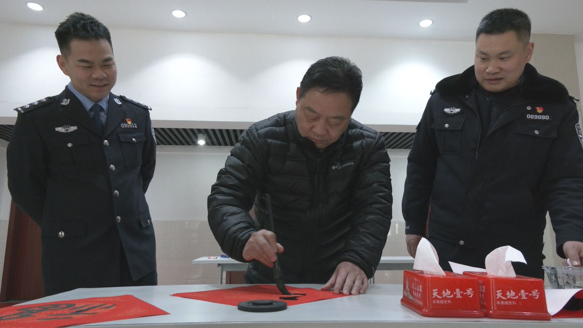 活动现场,书法家协会的老师们和警营书法爱好者,泼墨挥毫,各种书体神韵俱佳,一张张大红的福字,一幅幅墨香浓郁、寓意吉祥的大红春联表达了对节日和新春的美好祝福。参加活动的民辅警纷纷表示,此次活动不仅是一项凝聚警心的暖警措施,又活跃了警营文化生活,给大家搭建了一个交流切磋书法技艺的平台,收获满满。
