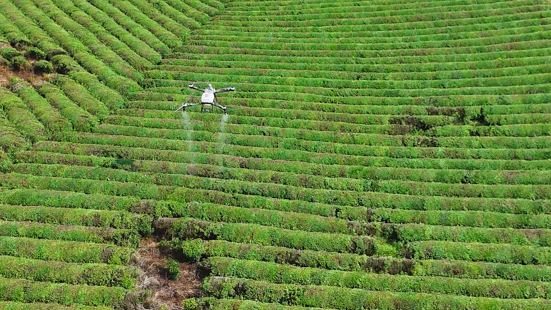 科技赋能正为传统茶园管护带来新变化。在崇阳县铜钟乡近1000亩的五彩茶园,正进行无人机病虫害防治作业。这种高科技管护方式大大提高了管护效率,短短1小时内,便能完成千亩茶园的管护任务。与此同时,在白霓镇石山村芽旗香有机茶基地,数名茶农正进行修枝等管护工作,通过修剪,让茶树保持良好的树形和旺盛长势。