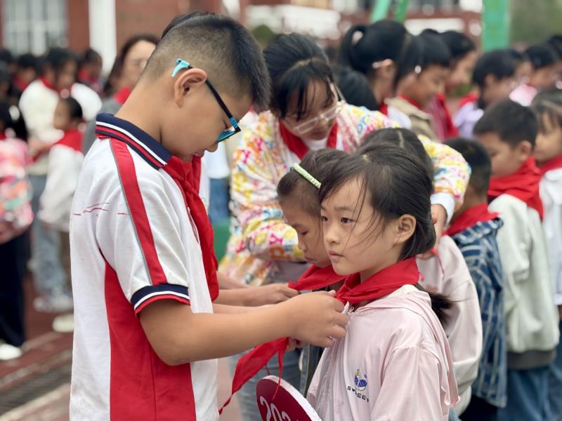 活动中,各学校少先队入队仪式规范有序、氛围庄重热烈。在崇阳县实验小学,老队员们庄重地为新队员系上鲜艳的红领巾,红色的三角巾在胸前飘扬,象征着少先队精神的传承与接力。新入队队员万奕宏难掩激动:“能成为一名少先队员,我感到特别荣幸。红领巾是国旗的一角,我今后会以队员的标准要求自己,努力成为新时代好少年。”