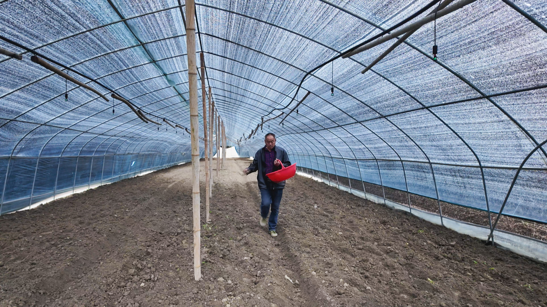 大棚区内,则是另一番忙碌景象。黄理云带领河南请来的技术员,手持工具均匀播撒猫爪草种子,细小的种子落入翻整好的土壤中。