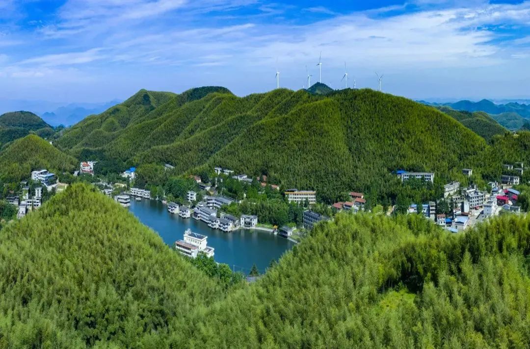 放眼东望,首先吸引目光的,是东方那一片无垠的翠色。那是翠竹岭,名字里便带着一股沁人的凉意。成片成片的竹林,依着山势起伏,不像树木那般棱角分明,却似一匹巨大的、被打翻的碧色绸缎,从山顶一直铺泻下去,柔和而充满韧性的波涛。秋风过处,竹海泛起涟漪,那不是树叶的窃窃私语,而是带着节律的、清越的飒飒之声,仿佛天地间正在演奏一曲空灵的古筝。目光越过这片起伏的绿浪,更远处,咸安的轮廓在薄霭中显得影影绰绰,如同海市蜃楼。而最东方的天际线下,便是思绪中的江汉平原了。那里已无山峦的遮拦,天地豁然开朗,沃野平畴,一望无际。秋收后的田野,裸露着赭石色与土黄色的肌肤,安详地休憩着;其间点缀的村落、蜿蜒的河流,在日光下闪着细碎的银光。那是一片孕育着安宁与富庶的土地,是“阡陌交通,鸡犬相闻”的田园梦境,与眼前竹海的清幽高逸,形成一实一虚、一密一疏的绝妙呼应。东面的景致,是一首由青绿山水渐变到淡彩水墨的悠长咏叹调。