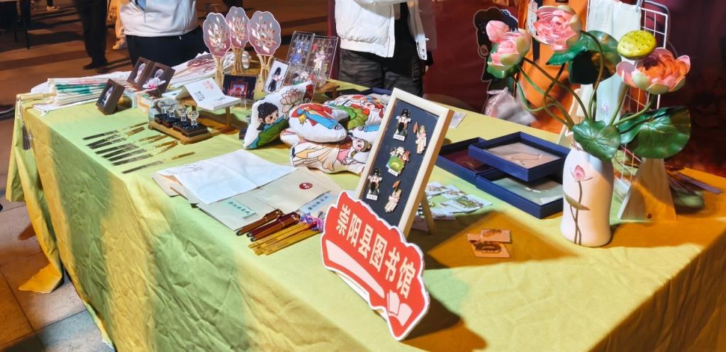 活动现场,崇阳县图书馆联合崇阳提琴戏传承与发展中心打造的文创展区人气十足。提琴造型书签、《双合莲》《钟九闹漕》经典剧目布偶、戏服纹样帆布包、迷你提琴模型等文创产品整齐陈列,传统韵味与现代设计巧妙融合,吸引了不少观众驻足。