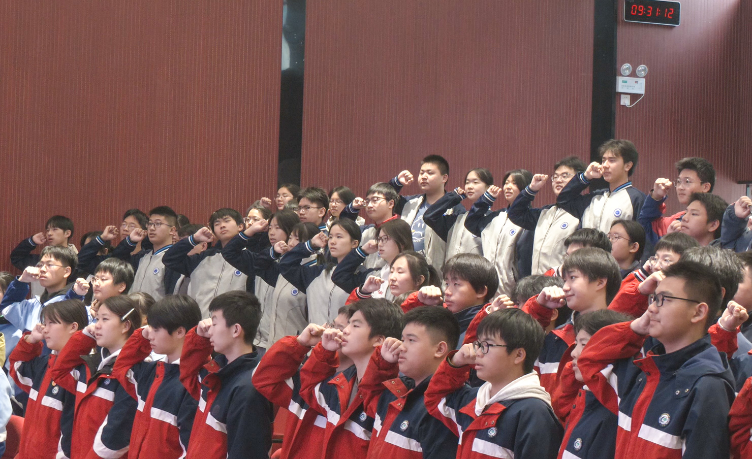 随后举行了新团员入团仪式。崇阳一中、崇阳二中等学校团组织负责人分别宣读了2025年下半年新发展团员名单,为新团员代表颁发团员证,并为他们佩戴团徽。全体新团员面向团旗庄严宣誓,并学习《中国共产主义青年团章程》中“团员的义务与权利”章节,进一步明确团员的责任与担当。
