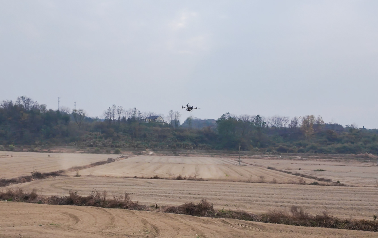 12月10日上午,记者在位于花山村1组的崇阳县好农种养专业合作社的700余亩种植基地看到,轰鸣的农机在田间穿梭翻地,无人机腾空而起精准播撒种子,农户们分工协作,勾勒出一幅充满希望的农耕画卷。