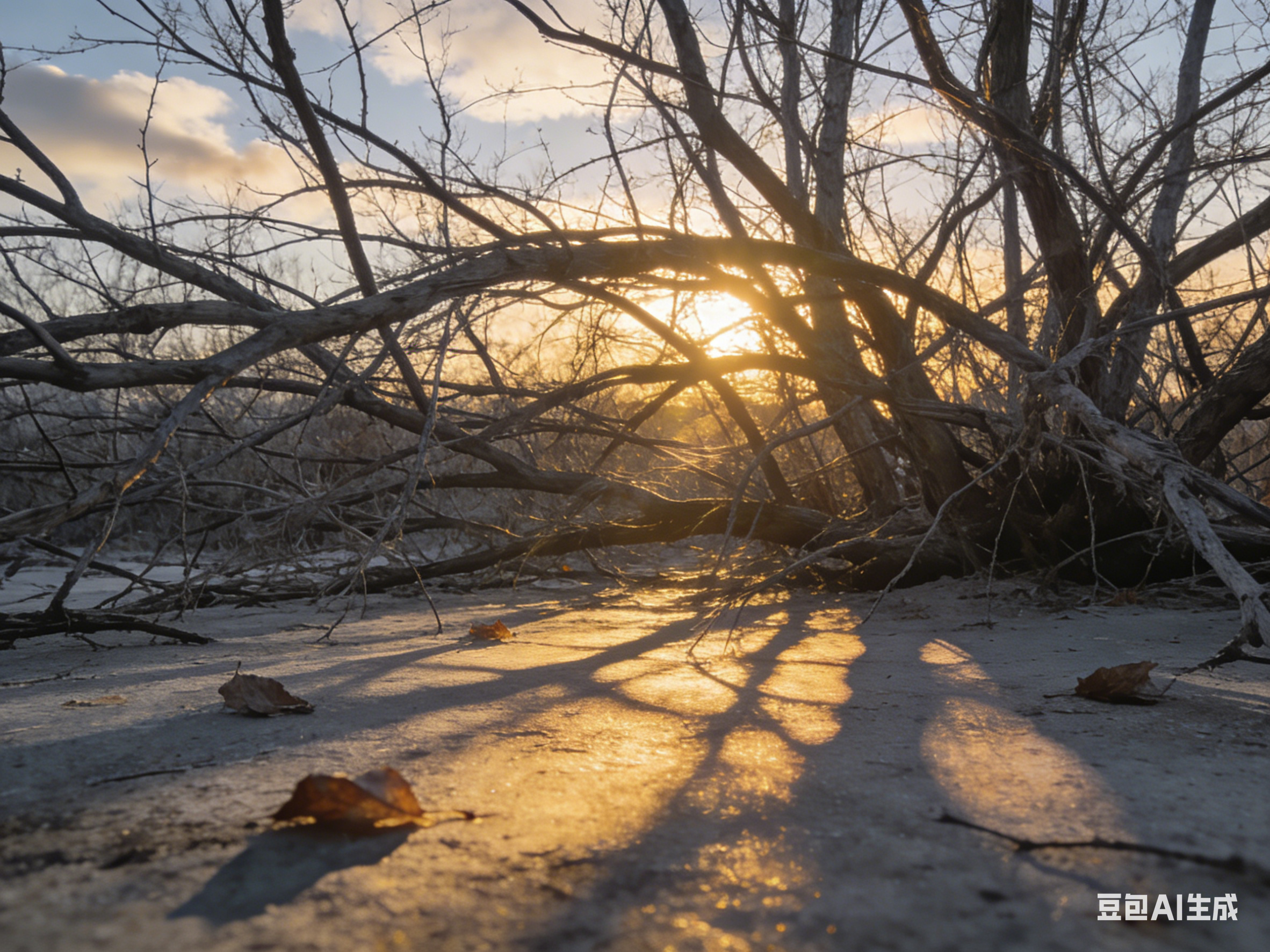 冬天的树,最动人的莫过于线条清晰的枯枝。它们并非一团杂乱的荒芜,而是有着自己的风骨与章法。细枝斜逸,或向上攀升,渴望触碰苍穹的辽阔;或往旁舒展,追寻风的足迹;或微微低垂,沉淀岁月的厚重。有的枯枝粗壮遒劲,似老者布满青筋的手掌,紧紧攥着岁月的痕迹;有的枯枝纤细纤长,如佳人伸开的指尖,温柔拂过冬日的清风。阳光透过枯枝的缝隙,洒下斑驳的光影,在地面上织就一幅细碎的画卷,风一吹,光影流动,枝条轻摇,竟有了几分灵动的意趣。