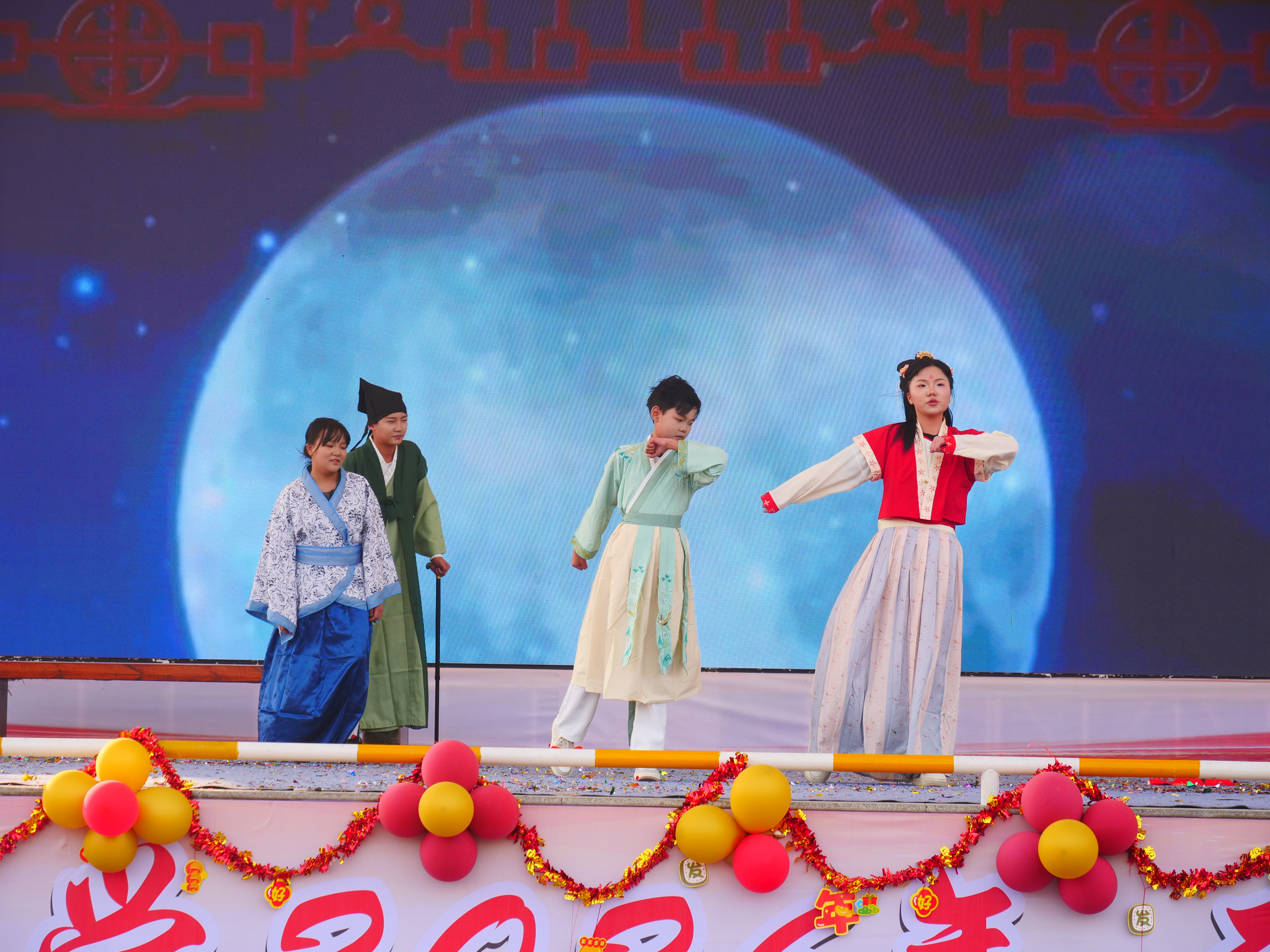活动在《歌唱祖国》的全场大合唱中拉开序幕,一面巨幅国旗在师生手中传递,台上台下五星红旗舞动,歌声激昂,瞬间点燃现场。开场舞《万紫千红》融汇多彩民族元素,象征各族儿女同心共筑中国梦;《汉韵风华》汉服秀与《月亮的女儿》民族舞相继登场,彰显文化自信,勾勒出一幅“各美其美、美美与共”的和谐画卷。压轴节目《我爱你中国》由76名学生深情合唱,连同朗诵《满江红》、器乐《精忠报国》等,层层递进地展现了新时代青少年深厚的家国情怀与昂扬风貌。