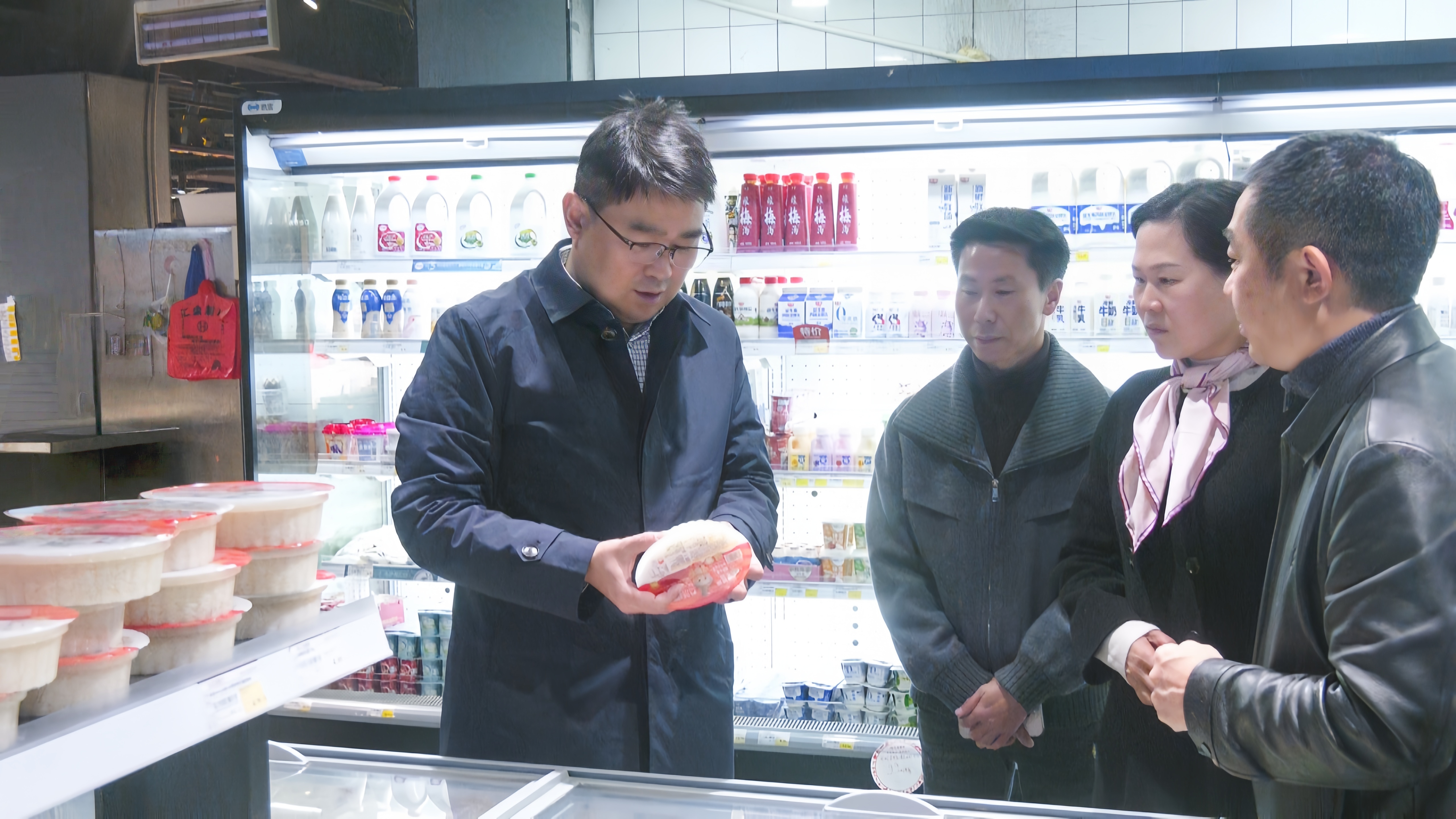 在汇金超市锦阳店,徐望重点检查了超市农副产品供应、质量安全监管等情况。徐望指出,农副产品质量安全直接关系群众“菜篮子”“米袋子”安全,超市要切实履行主体责任,严把农副产品进货关、储存关、销售关,做好全流程质量监管,确保上架农副产品来源可溯、质量可靠。要加强节日期间市场供应,丰富商品种类,满足群众节日消费需求。