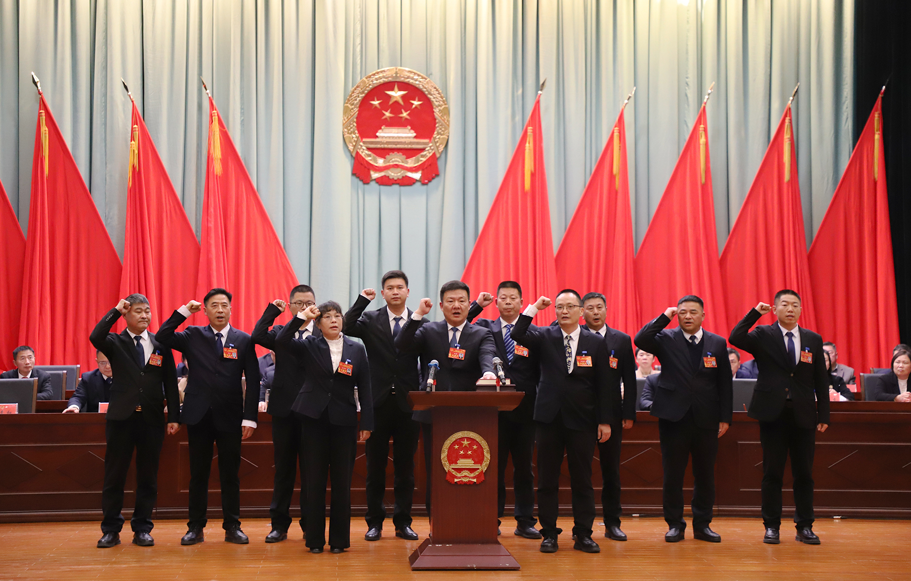 随后举行了宪法宣誓仪式。石磊、陈英杰、姜青和等新当选的同志向宪法庄严宣誓。