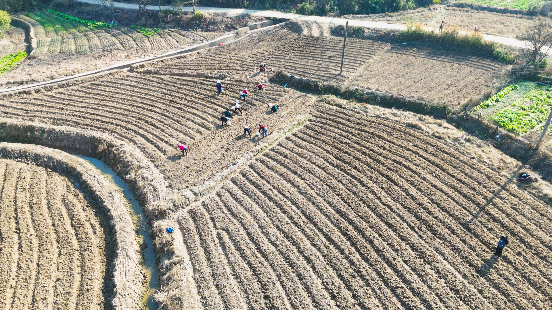 1月15日,走进石下村玄参种植基地,田垄整齐排列,村民们分散在地里弯腰、打窝、下苗,动作熟练连贯,冬日暖阳下,一幅生动的农忙画卷徐徐展开。