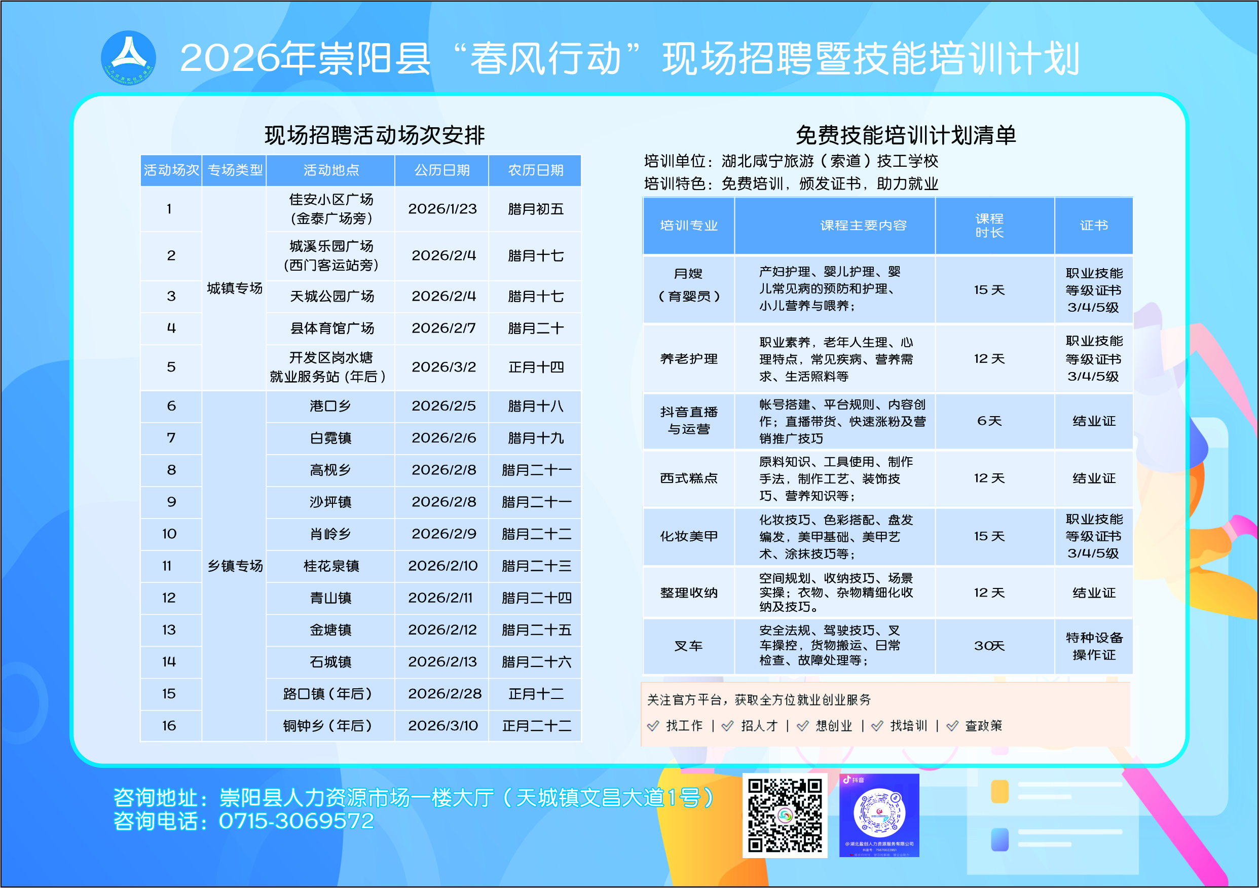 📍 咨询地址:崇阳县人力资源市场一楼大厅(天城镇文昌大道1号)