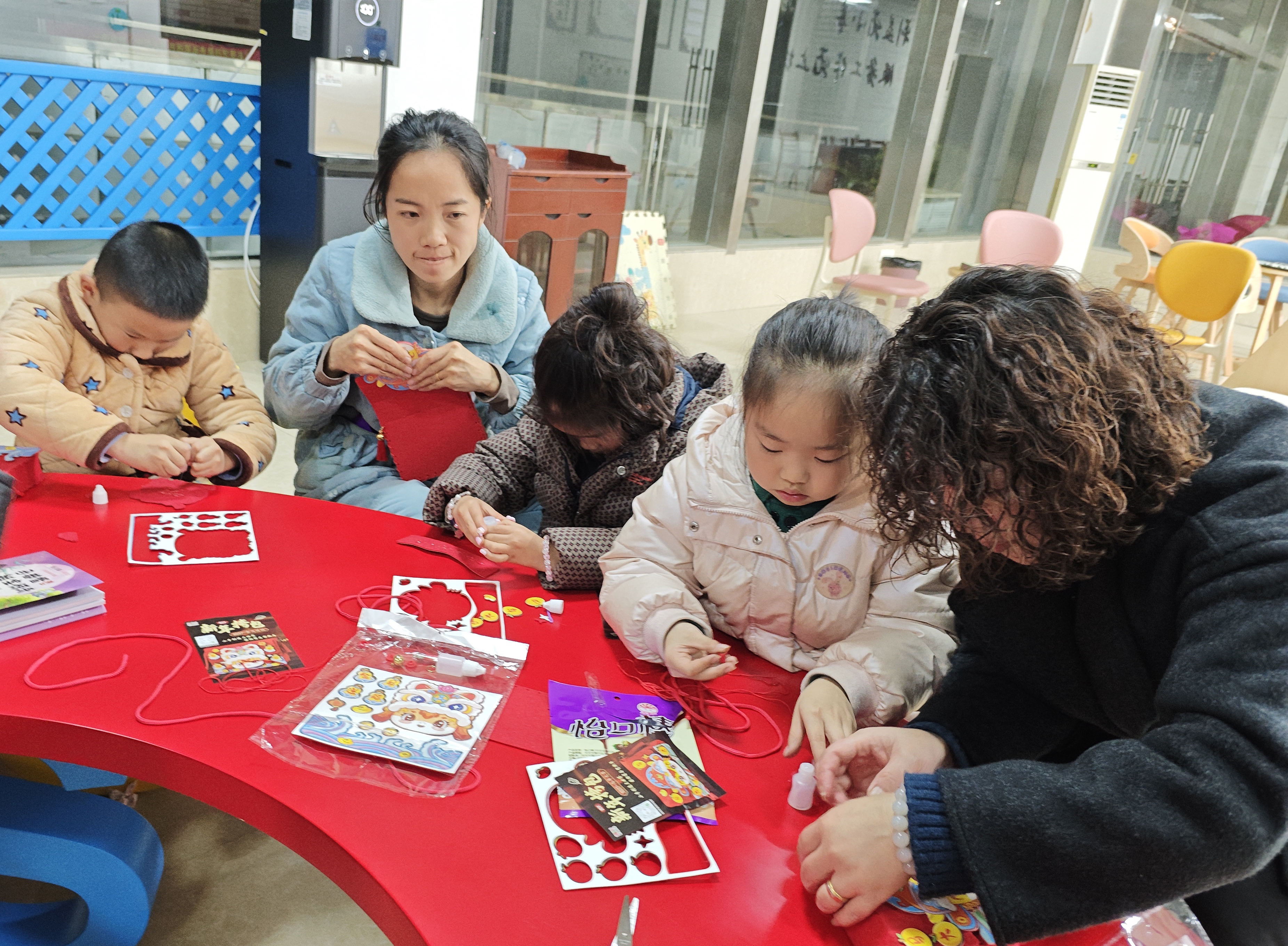 面对略显陌生的针线活,孩子们起初有些生疏,但他们个个神情专注,虚心请教。制作过程中,每当有孩子遇到“小麻烦”,身旁的家长和志愿者都耐心指导,共同参与,现场氛围温馨又热闹。
