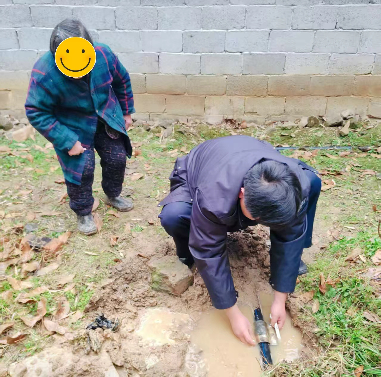 汪庆立刻跟随老人赶到家中,看到空地里积水已漫延,当即查看管道口径,主动前往五金店自掏腰包购买接水头等配件。回到现场后,他蹲在泥地里拆卸破损部分,快速安装好新配件,第一时间为老人恢复供水。