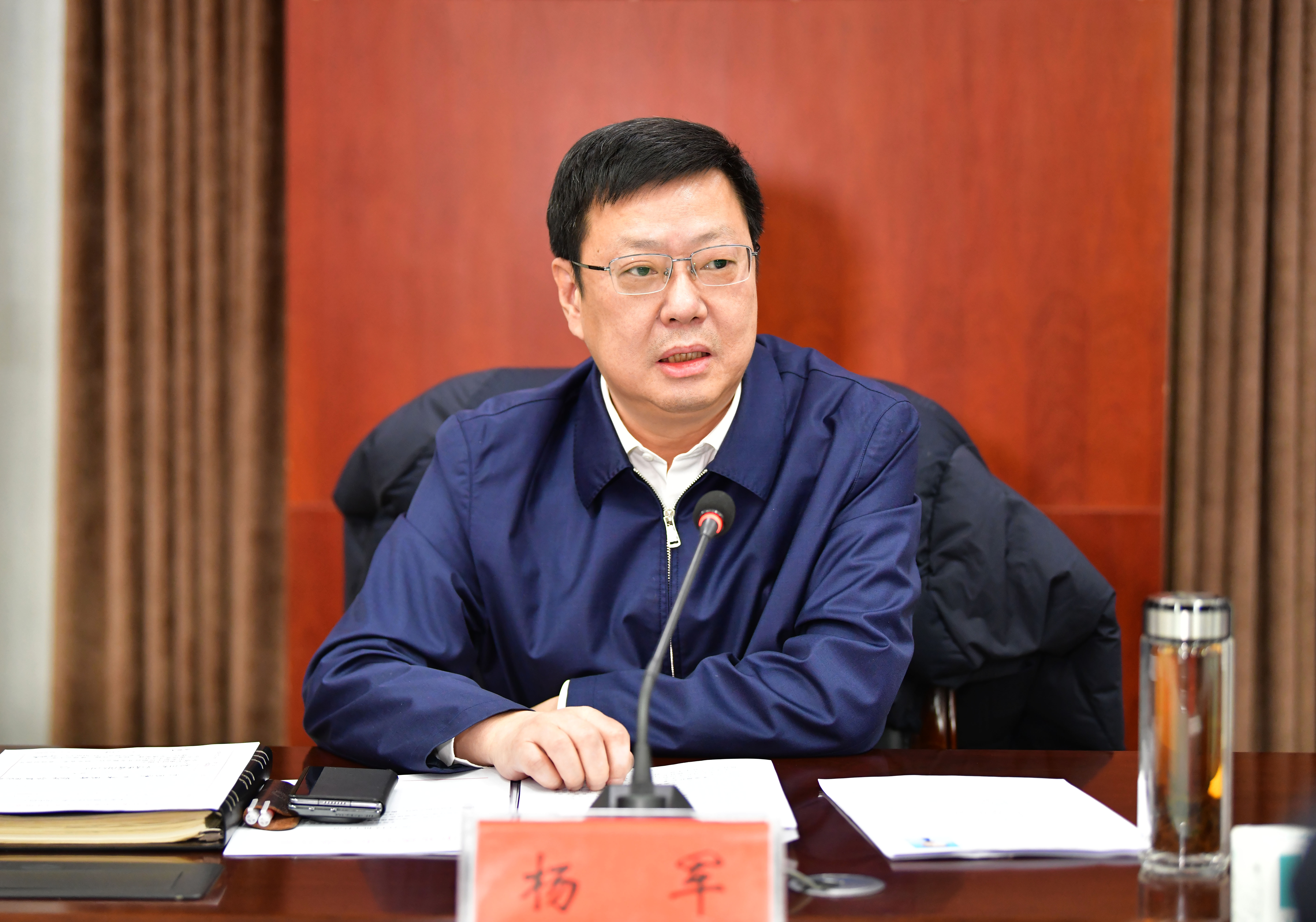 杨军强调,要保持“静”的定力,做到静守初心、静学提能、静以修身。以党的初心为本心、以党的使命为生命,牢牢守住法律底线、纪律底线、政策底线和道德底线,不断彰显讲政治、能扛活、有情怀的鲜明特质,凝聚团结奋进的磅礴力量。把学习作为终身课必修课,提升理论水平、锤炼专业素养、强化实践本领,以全球视野、前瞻思维、理性态度和历史担当主动识变应变求变,巩固拓展良好发展势头。树牢以人民为中心的发展思想,多做打基础、利长远、增后劲的事,解决好群众急难愁盼问题,让发展成果更多更公平惠及人民群众。持续提高党性修养,善于自我革新、自觉接受监督、管好身边人身边事,勤掸“思想尘”、多思“贪欲害”、常破“心中贼”,以内无妄思保证外无妄动。