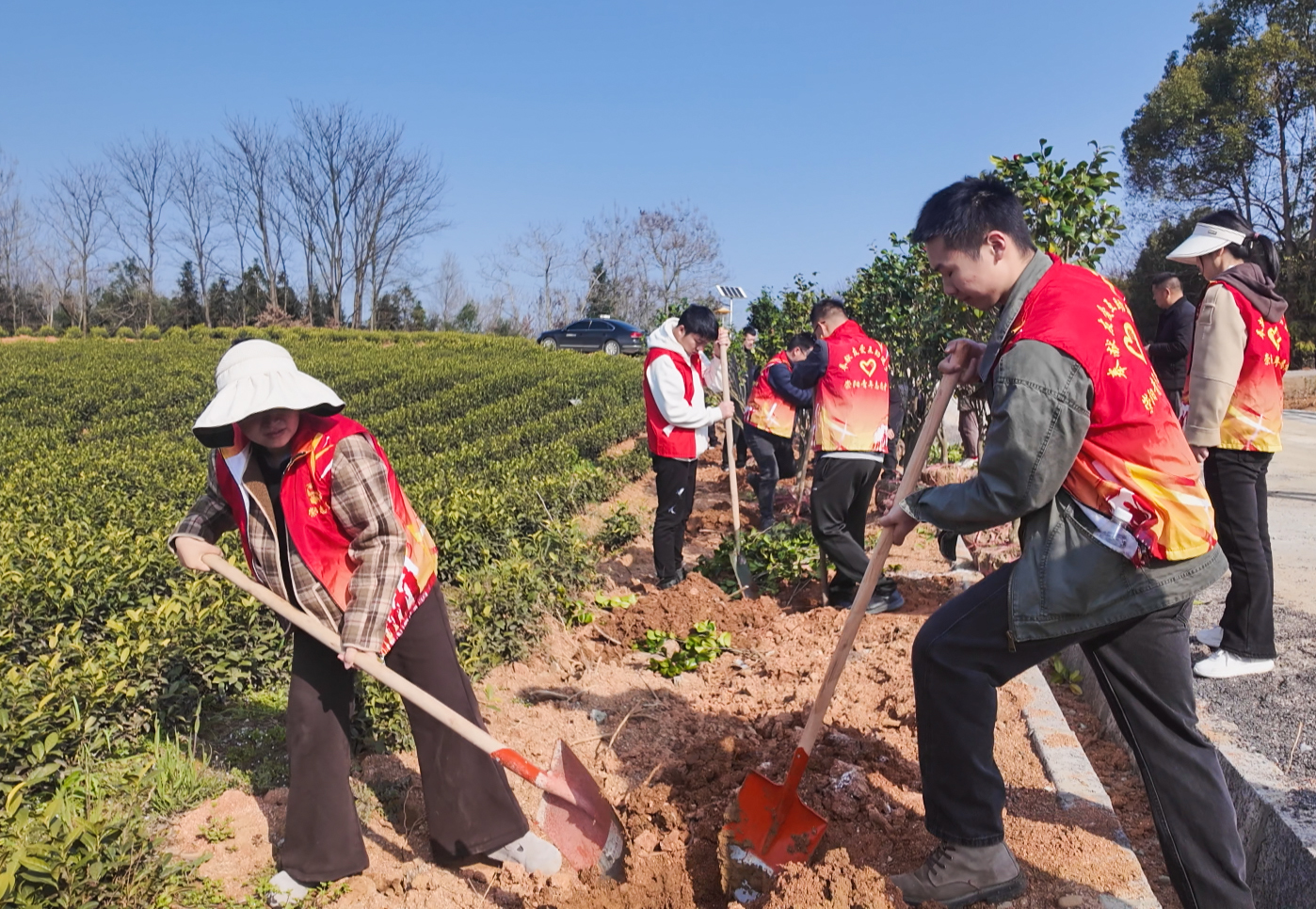 活动现场,大家分工协作、默契配合,挥锹铲土、扶苗定植、培土压实、提水浇灌,每一道工序都认真细致、规范有序,为春日山野添上层层新绿,让生态绿意与白茶产业相映成景。