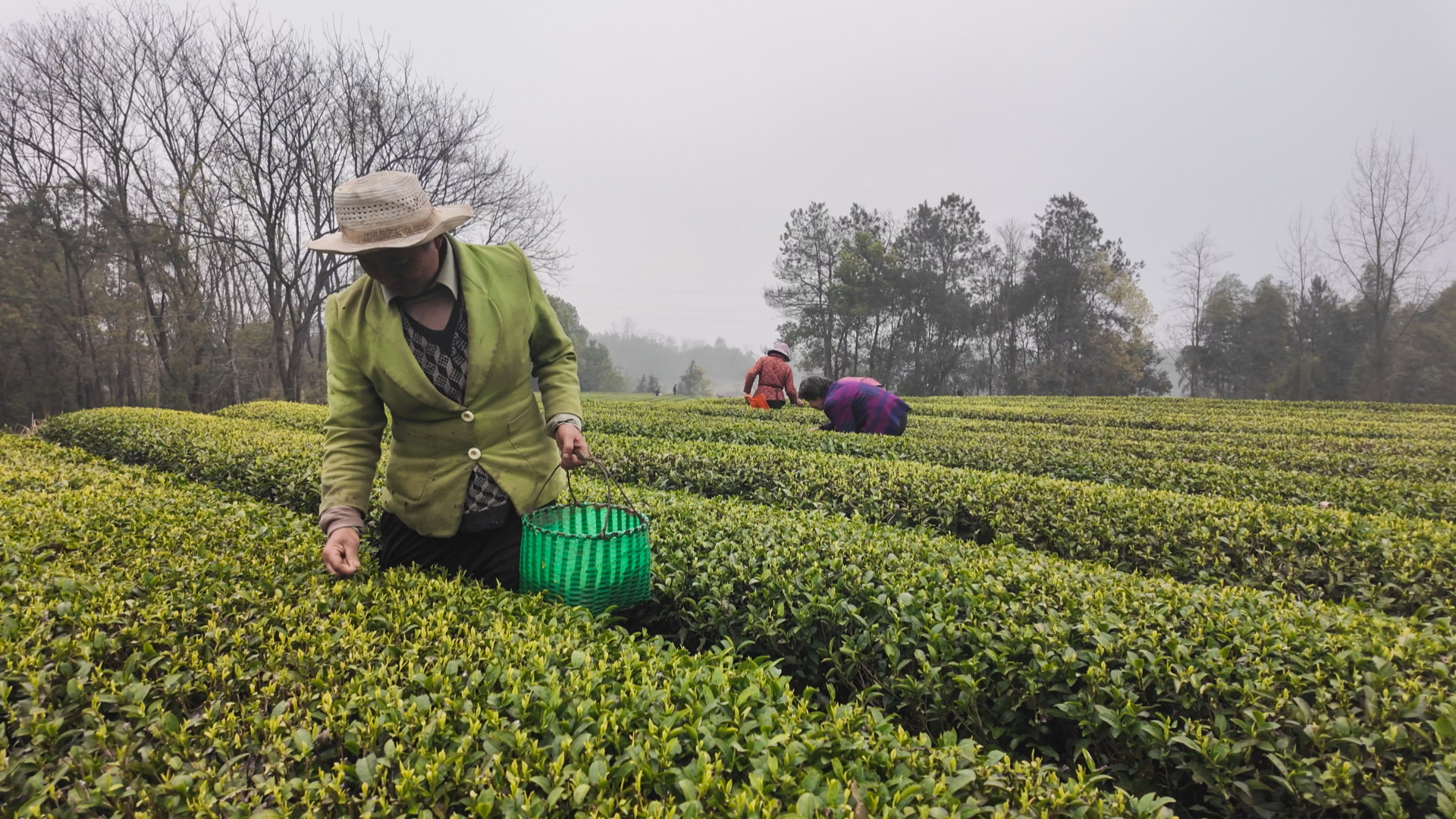 基地里,86名村民分散在层层梯田般的茶园中,双手飞快地采摘着新茶。他们大多是附近村庄的留守老人和妇女,在采茶季每天能有一百多元的收入,每年还能分得土地流转的租金。