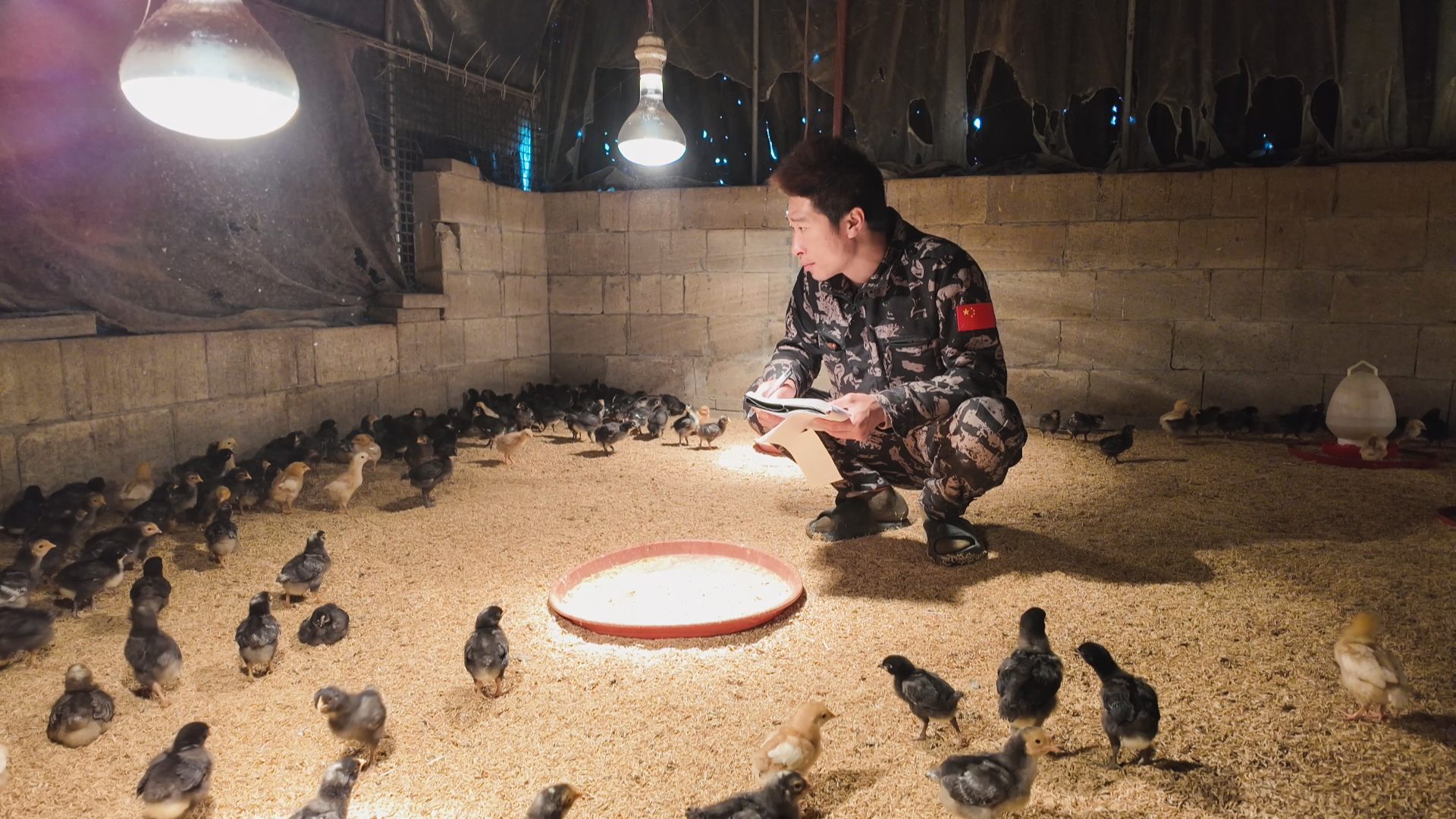 “每天除了喂食喂水,我还要进来巡查五六次,观察鸡的粪便、采食量,控制好棚内温度,这样才能保证小鸡的存活率。”徐伟杰一边用手轻轻拨开鸡群,查看鸡苗的生长状况,一边笑着说道,语气里满是对这些“致富宝贝”的珍视。