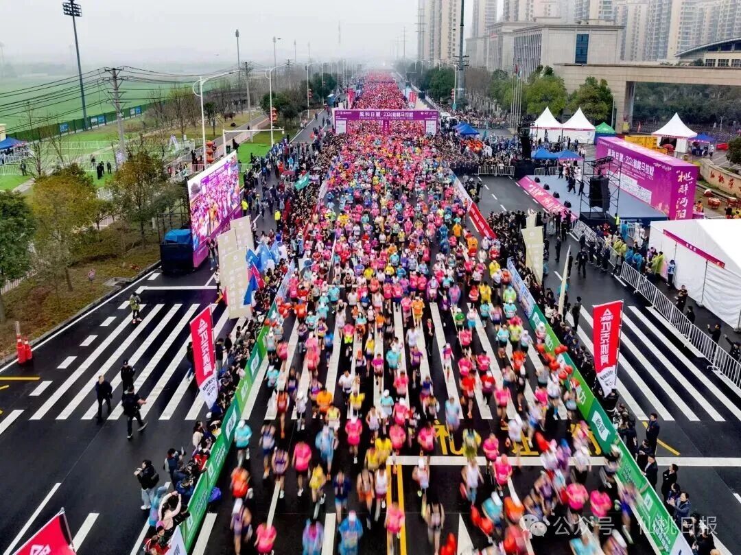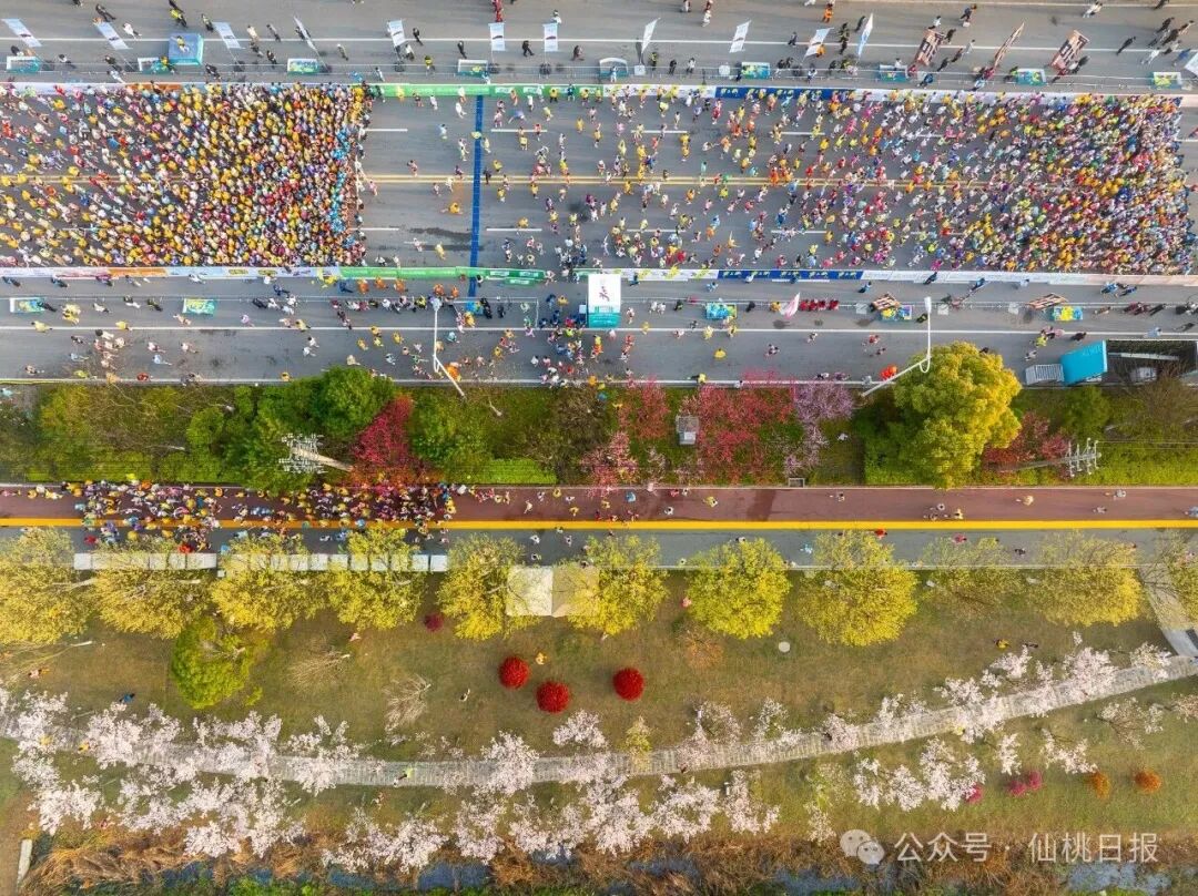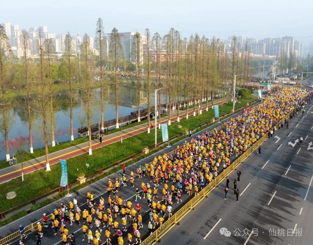 清晨,紧张、兴奋的人们如完成某种使命一般,从城市的各个角落汇聚到起点。轻快的脚步跑过沔州大道的宽阔、钱沟南路的烟火、彭场大道的活力,这种沉浸式的城市体验,任何宣传片、推介词都无法替代。