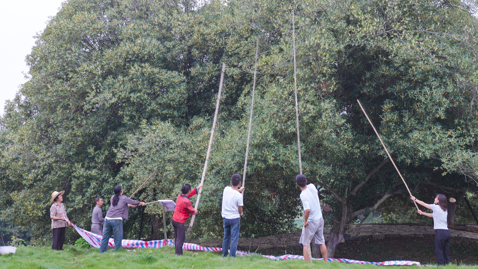 秋季,白霓镇百年古桂群迎来盛花期,600年树龄的古桂树枝繁叶茂,“桂花雨”簌簌落下,香气弥漫山谷。