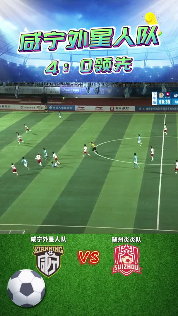4月18日晚,2026年湖北省城市足球联赛(楚超)咸宁赛区首轮较量在崇阳县文体中心打响。坐镇主场的咸宁外星人队以4比0完胜来访的随州炎炎队,迎来开门红。