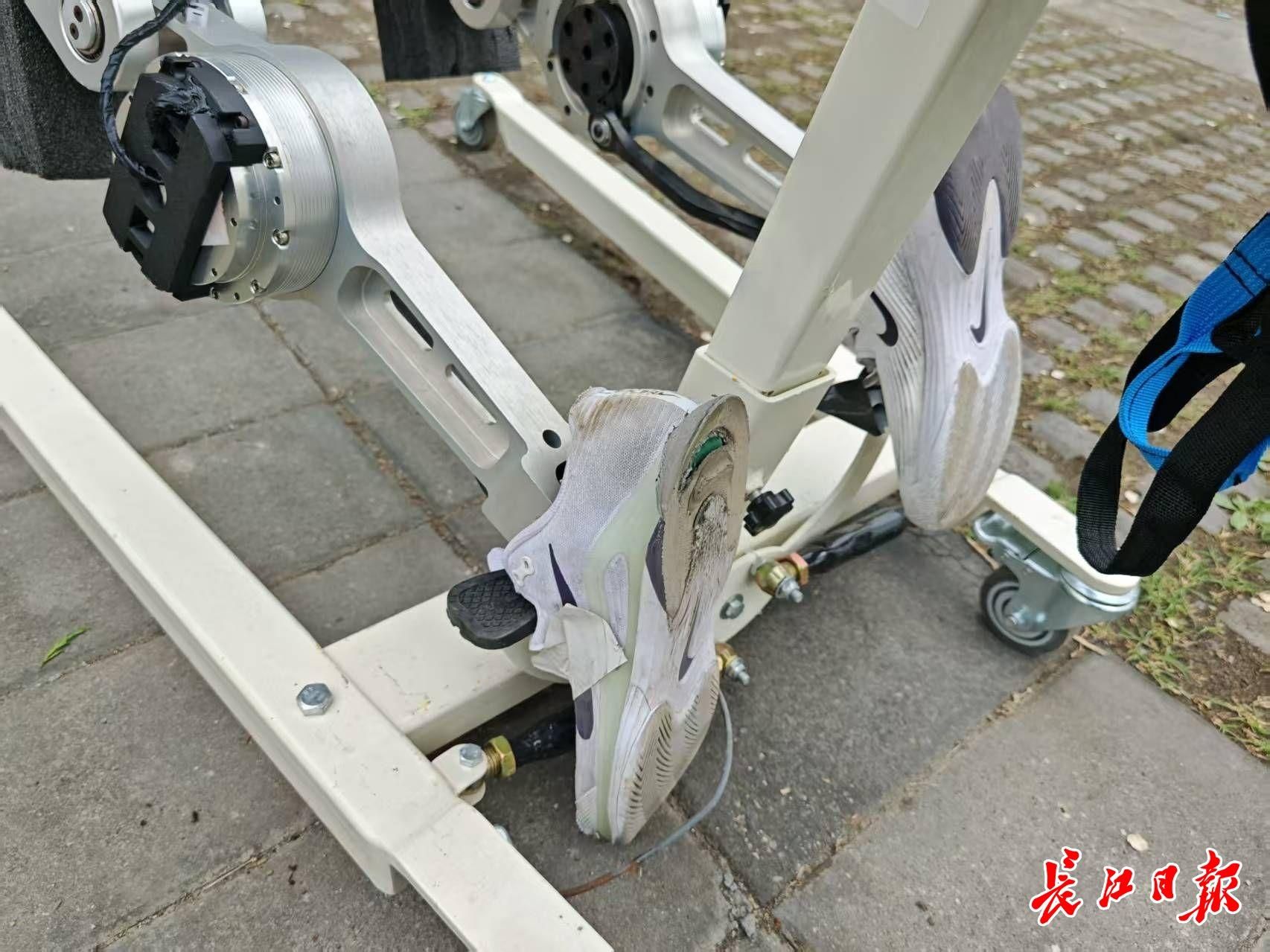 这支队伍的机器人小伙伴,赛前换上了一双新运动鞋。完赛后,左脚的鞋底几乎已被磨穿。