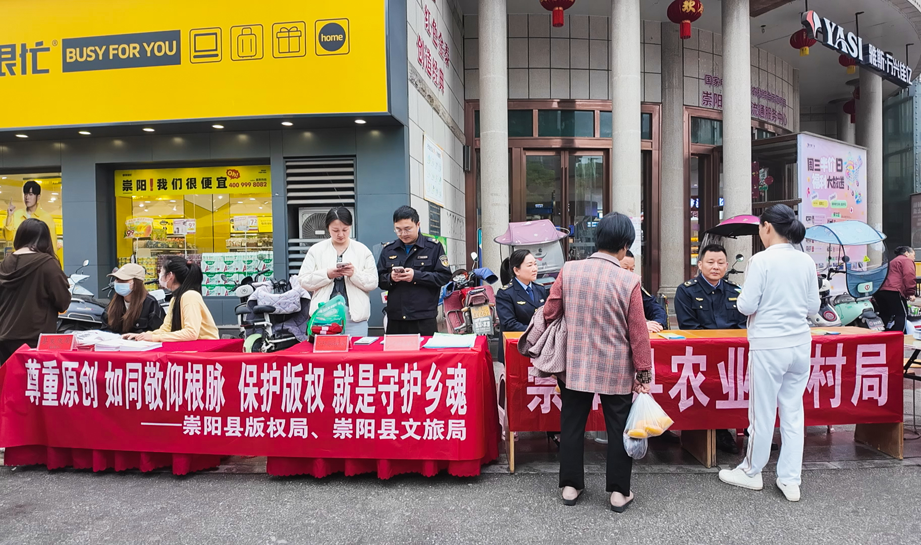 “举行‘4·26世界知识产权日’宣传活动,旨在提高群众知识产权参与意识,共同推进崇阳知识产权强县建设。”崇阳县知识产权股股长柳军霞说。