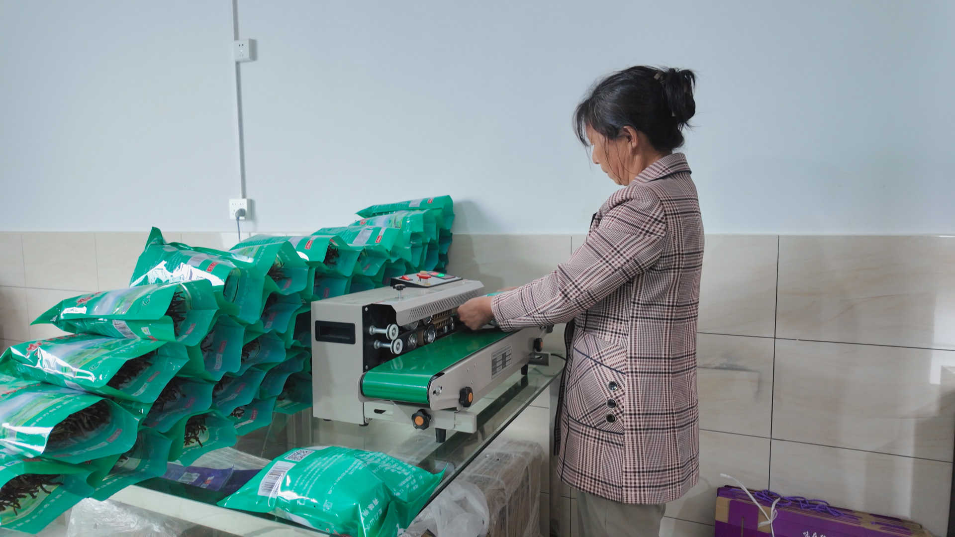 除了抓好田间种植管理,在基地加工车间内,晒干的红薯粉条色泽鲜亮,工人正有序打包黄精红薯粉。基地通过线上小程序与线下渠道,拓宽产品销售市场,让小贡薯成为农户增收致富的“金疙瘩”。