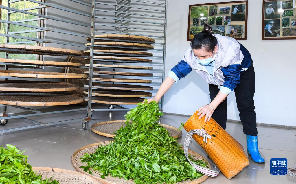 4月10日,在海南省五指山市水满乡毛纳村,茶农在手工茶坊内工作。新华社记者 杨冠宇 摄