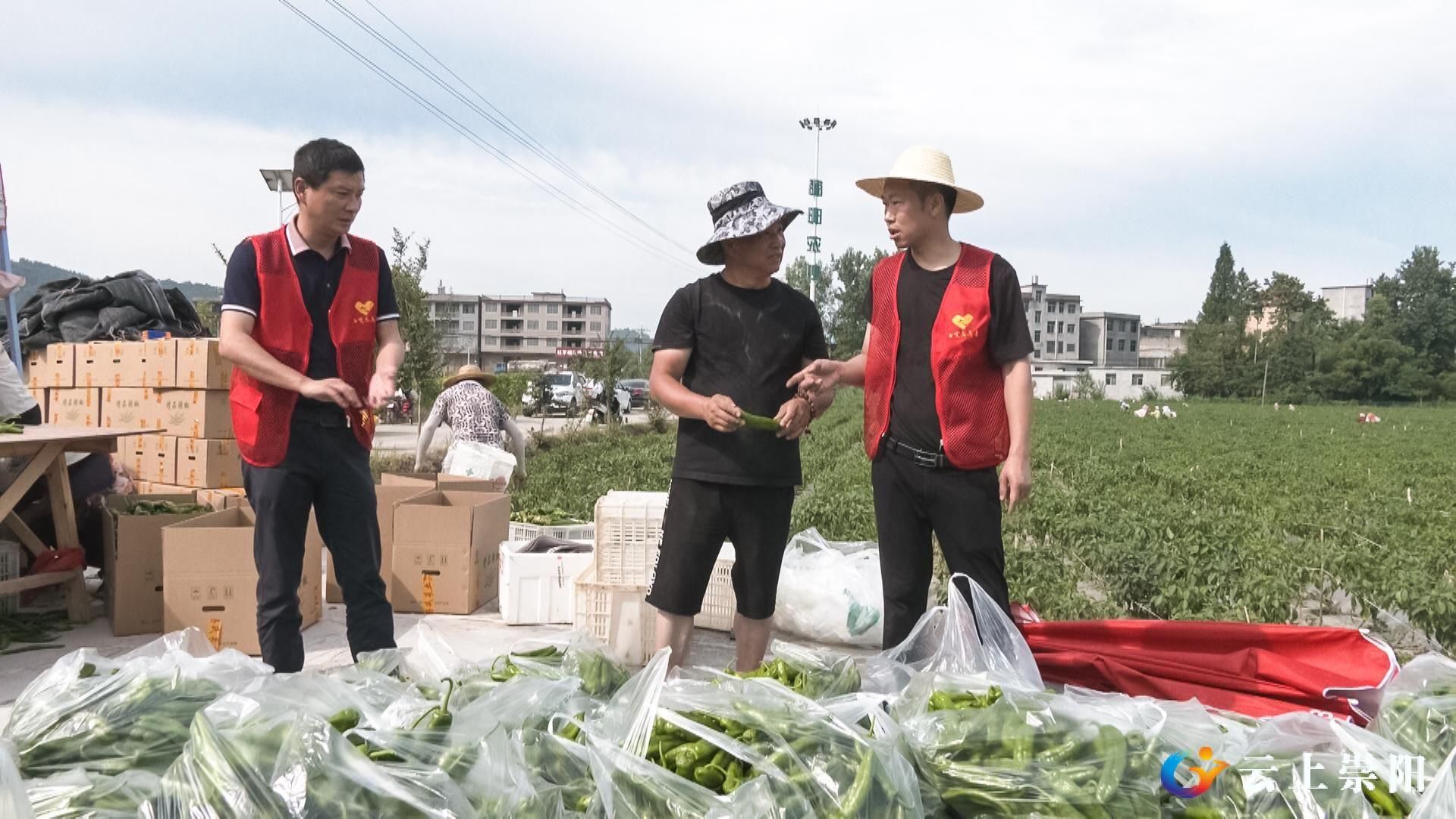 骄阳似火,身穿红马甲的党员干部和志愿者们穿梭在田间。大家干劲十足,摘、捡、装,动作一气呵成,虽然忙得汗流浃背,但是看着一包包亲手采摘的辣椒打包成箱,大家脸上都洋溢着丰收的喜悦。