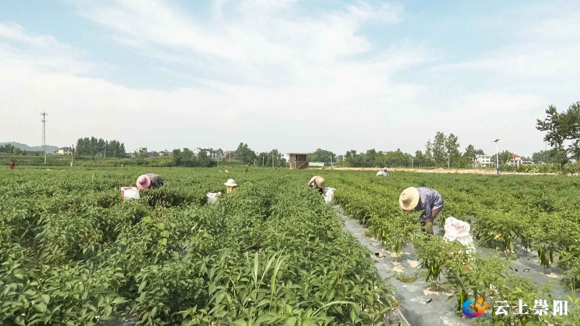 连日来,崇阳县白霓镇金星村现代农业产业园千亩蔬菜基地的800亩辣椒迎来了大丰收,村民们正忙着采摘、分拣、装箱,一派繁忙的丰收景象。
