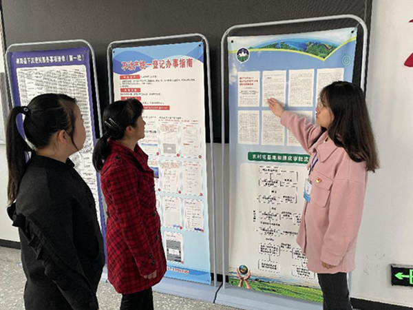 图为崇阳县石城镇干部向群众介绍小微权力审批流程图