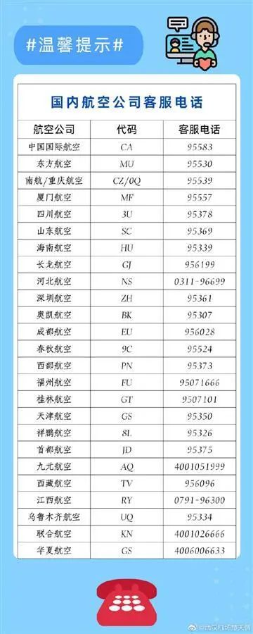 受武汉市强降雨影响,截至当日18时,武汉天河机场进出港航班有60班延误205班取消。天河机场提示,具体航班延误信息,可咨询相关航空公司。(中国国际航空公司:95583 ;中国东方航空:95530;中国南方航空:95539;海南航空:95339;厦门航空:95557;四川航空:95378;深圳航空:95361;山东航空:95369;春秋航空:95524)
