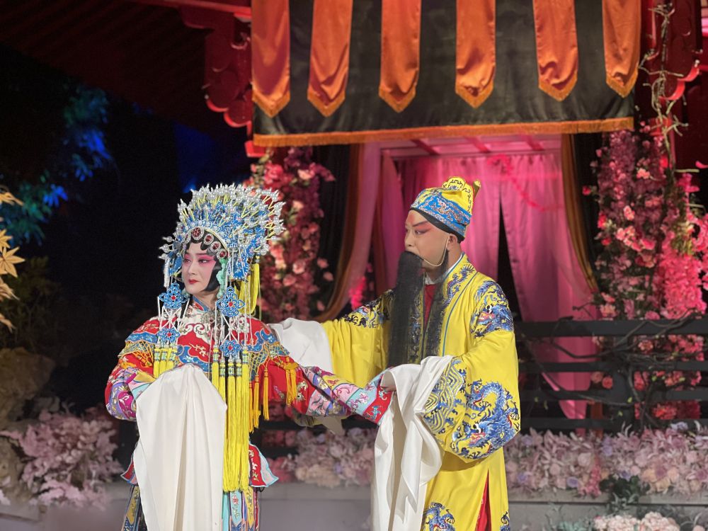 光影摇曳的“百花亭”中,“杨贵妃”双眸含泪,与“唐明皇”上演一场一眼万年的凄美绝唱……“五一”假期,夜色中的武汉博物馆上演了多场环境式驻演汉剧《贵妃醉酒》。
