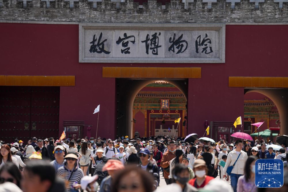 4月29日,游客在参观结束后走出故宫博物院。新华社记者 鞠焕宗 摄