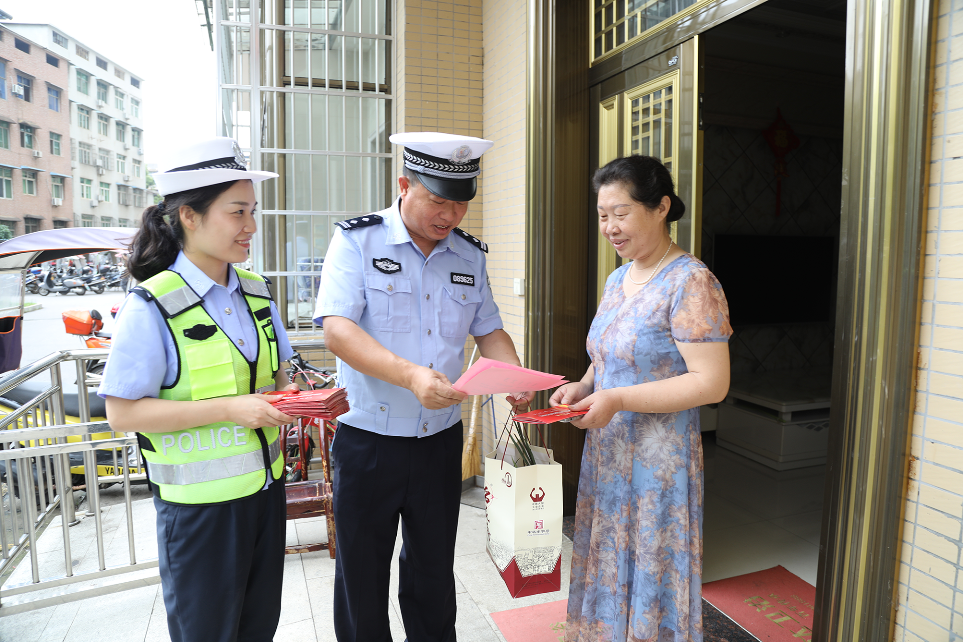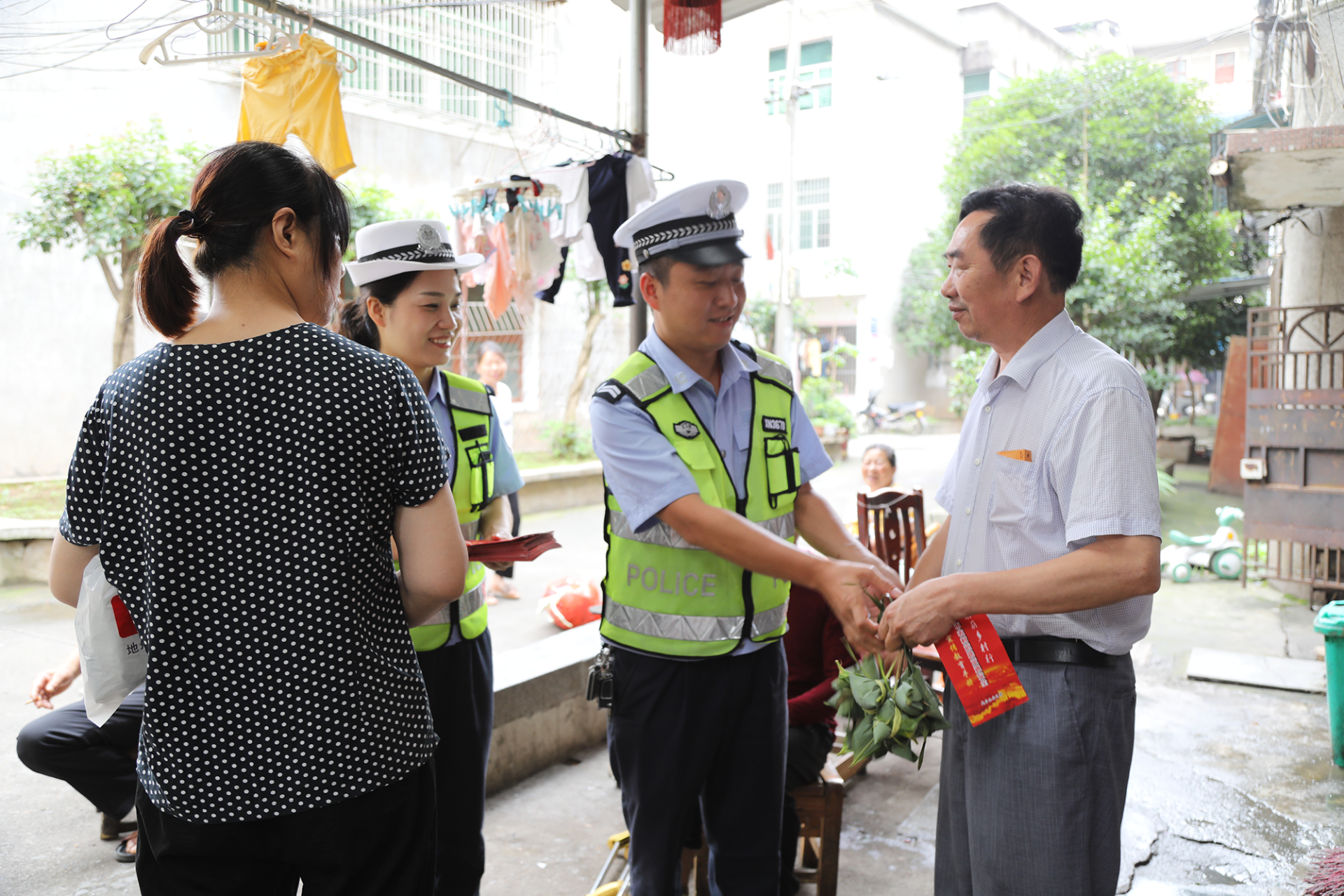 活动中,民辅警们还深入社区开展“敲门行动”,将交通安全知识送上门的同时,暖心地为居民们送上粽子作为小礼物。此次活动,不仅弘扬了社区文明新风,也将交通安全知识送进了居民心中,进一步提高辖区群众的交通安全意识,在浓郁的粽香中,让共建工作走深走实,让党建引领公安交管工作更加接地气、更有烟火气。