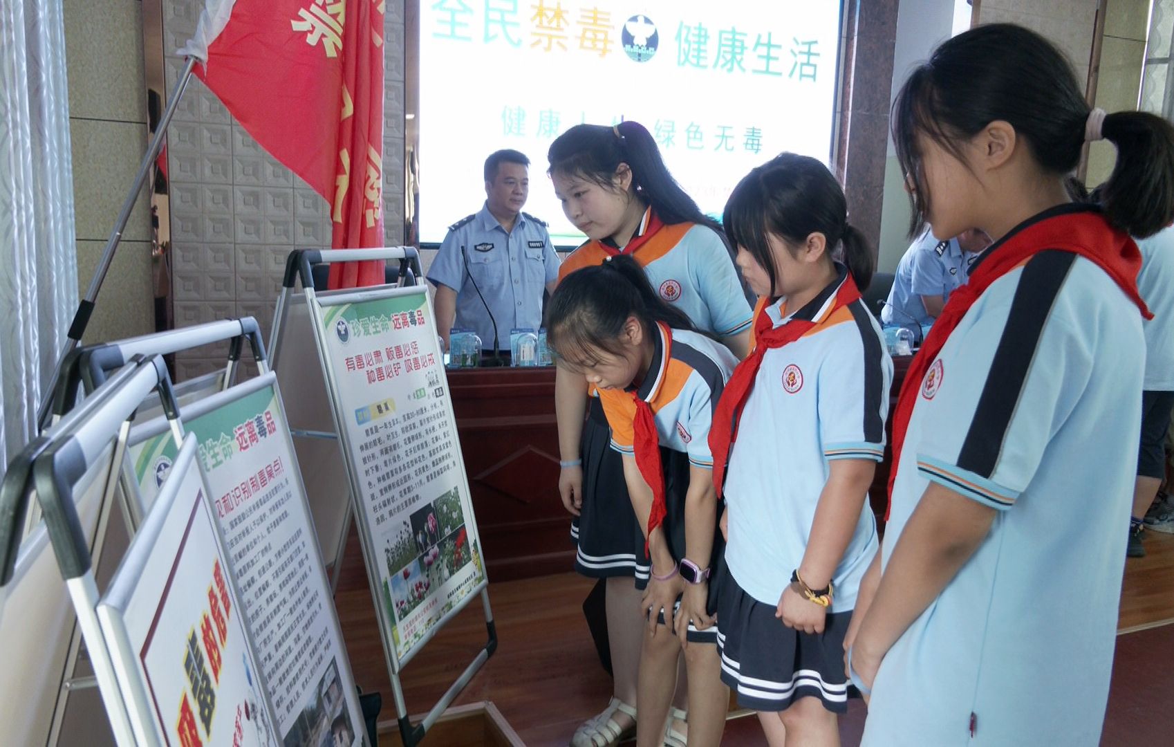 崇阳县公安局民警和天城镇中心戒毒社区的工作人员来到崇阳县第四小学,开展禁毒安全教育宣传活动。民警通过摆放禁毒宣传展板、展示毒品模型、现场解答等方式,向同学们讲解了“什么是毒品”“毒品的危害”“青少年怎么自卫防毒”等知识,告诫学生认清毒品危害,树立自我保护意识,共同筑牢青少年禁毒防线。同时,民警与学生积极互动,引导学生们有序参观仿真毒品模型,加深学生们对毒品特别是对新型毒品的印象,深刻认识毒品的各种危害性,切实提高学生们的识毒、防毒、拒毒意识。